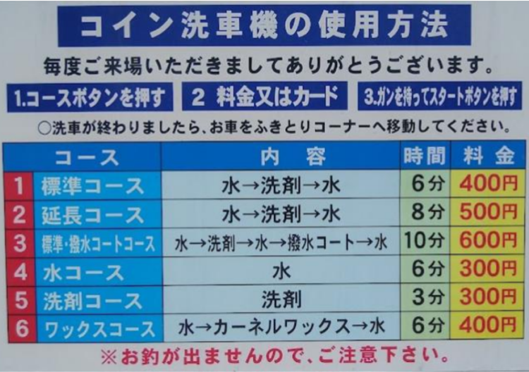 コイン洗車場のお問い合わせ
